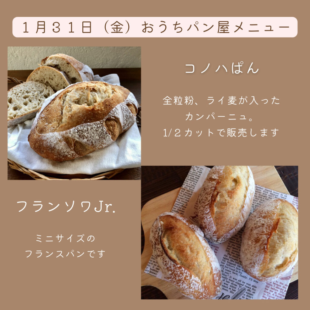 1月31日(金)おうちパン屋のメニュー