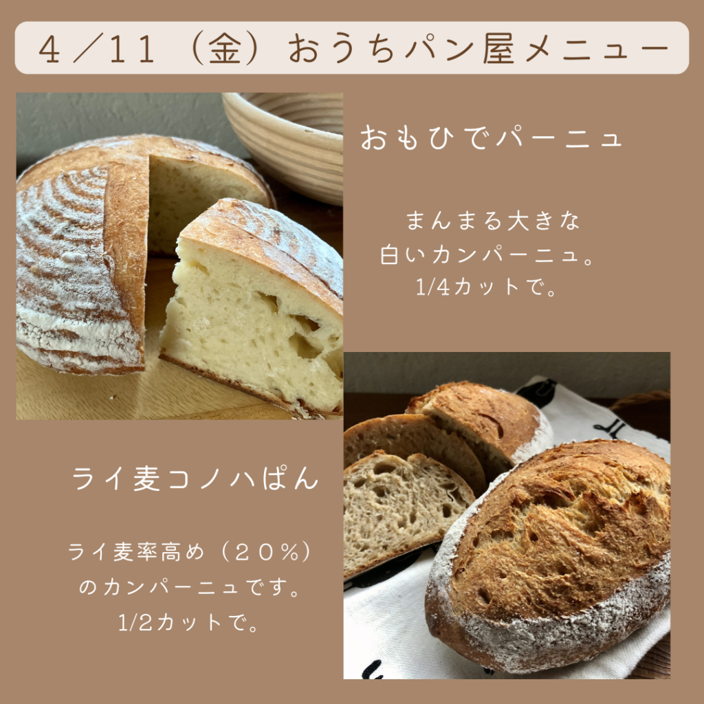 自宅工房にてパンとお菓子を販売します。