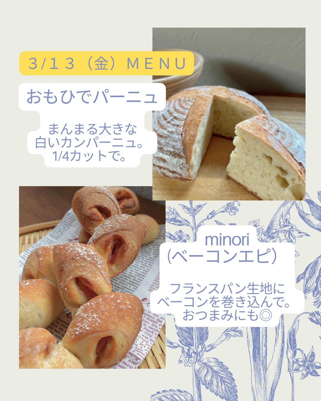 3月13日(金) 11:00〜16:00 自宅工房にてパンとお菓子を販売します。 ※青梅線“中神駅“から徒歩8分。 詳しくは"地図"をご覧ください。 ※ ...